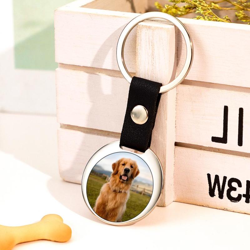 Personalisierter Foto-schlüsselanhänger Mit Text, Vintage-leder-schlüsselanhänger Für Haustierliebhaber