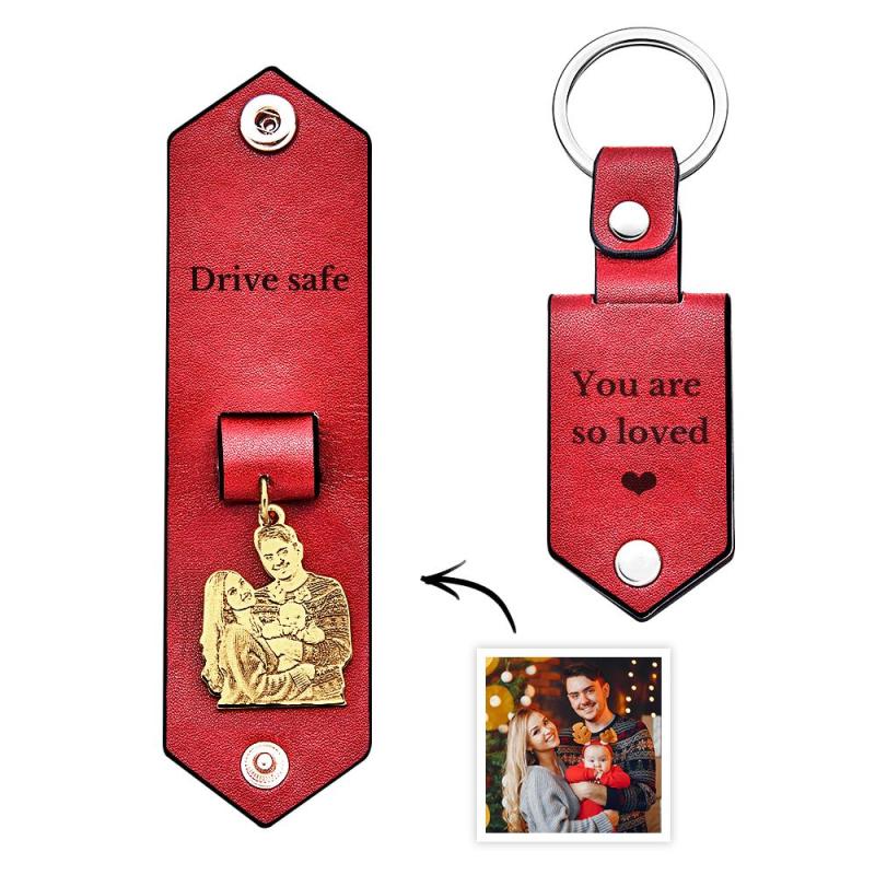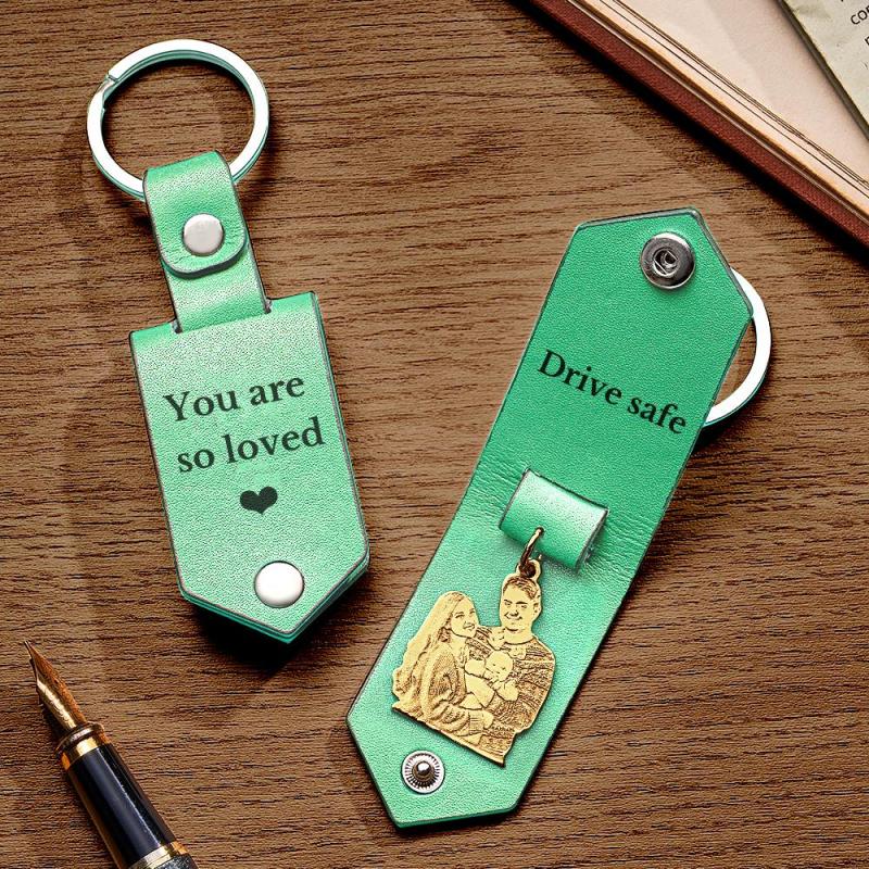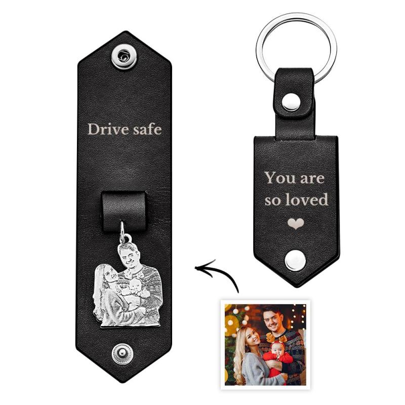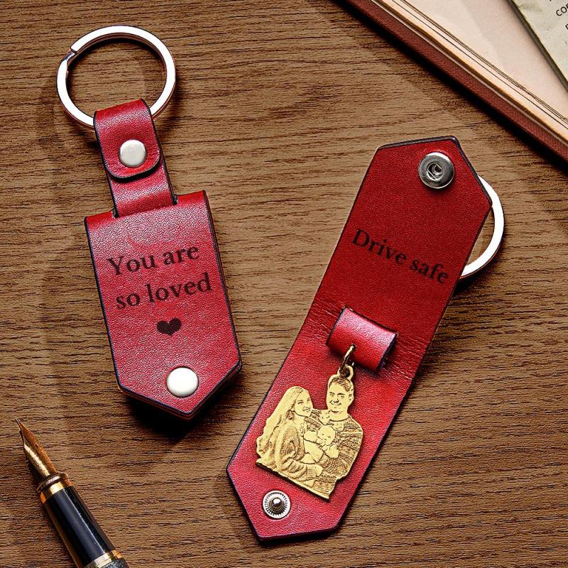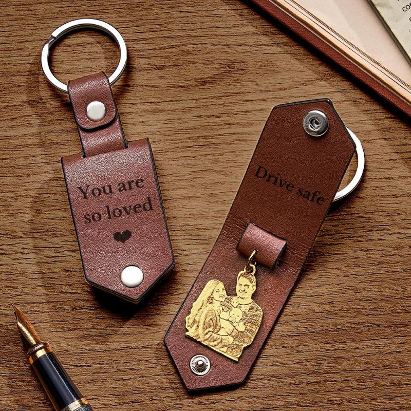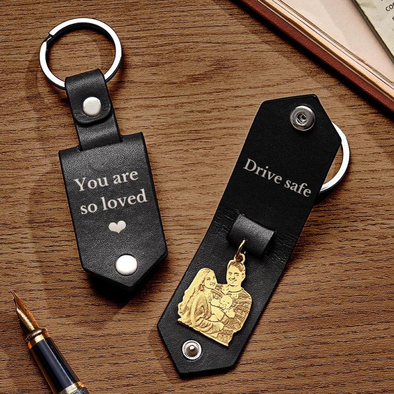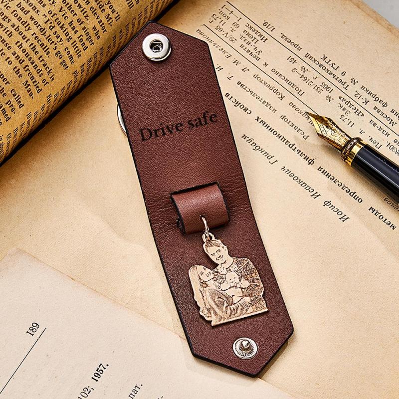 Personalisierter Foto-leder-schlüsselanhänger Mit Text, Jubiläumsgeschenke Für Männer