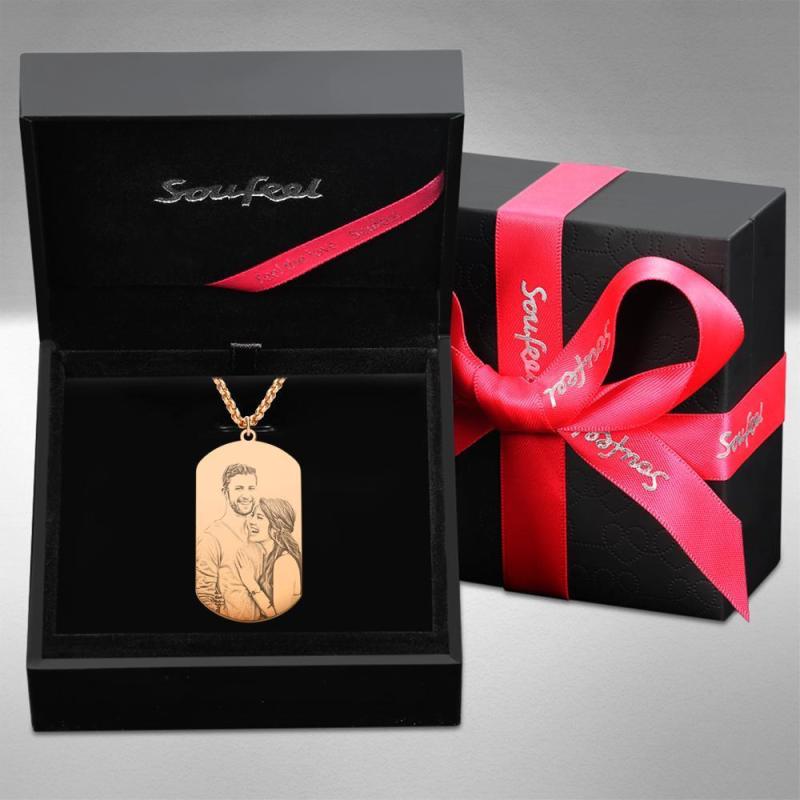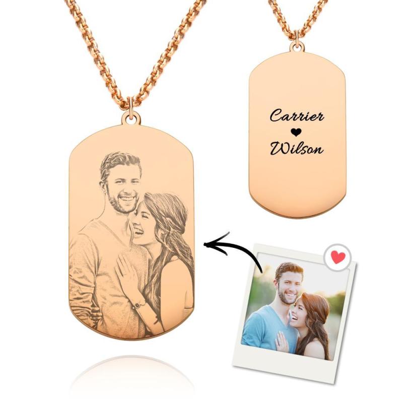 Benutzerdefinierte Foto Halskette Graviert Halskette Rose Gold Farbe Skizze Effekt Geschenke Für Paare