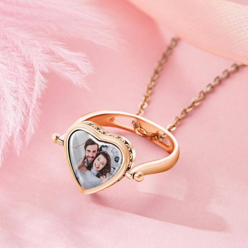 Benutzerdefinierte Foto-Halskette, Foto Ring Memorial Geschenke Dual-Use (Ring Größe 5#) Rose Gold Plattiert Silber
