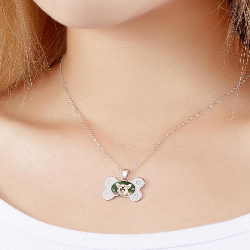 Individueller Dog Tag Foto Halsketten Anhänger Mit Kleinen Fußabdrücken