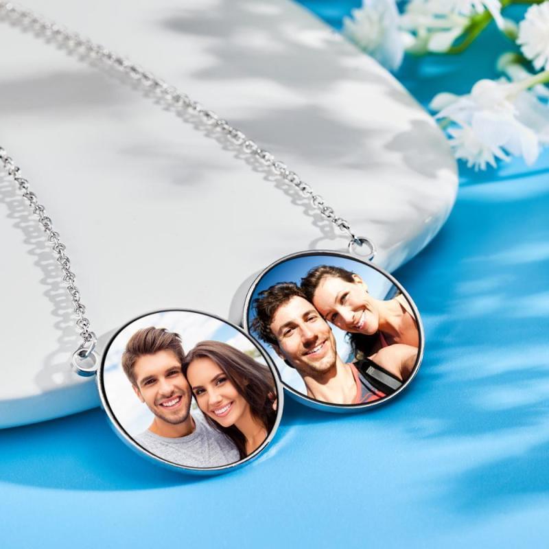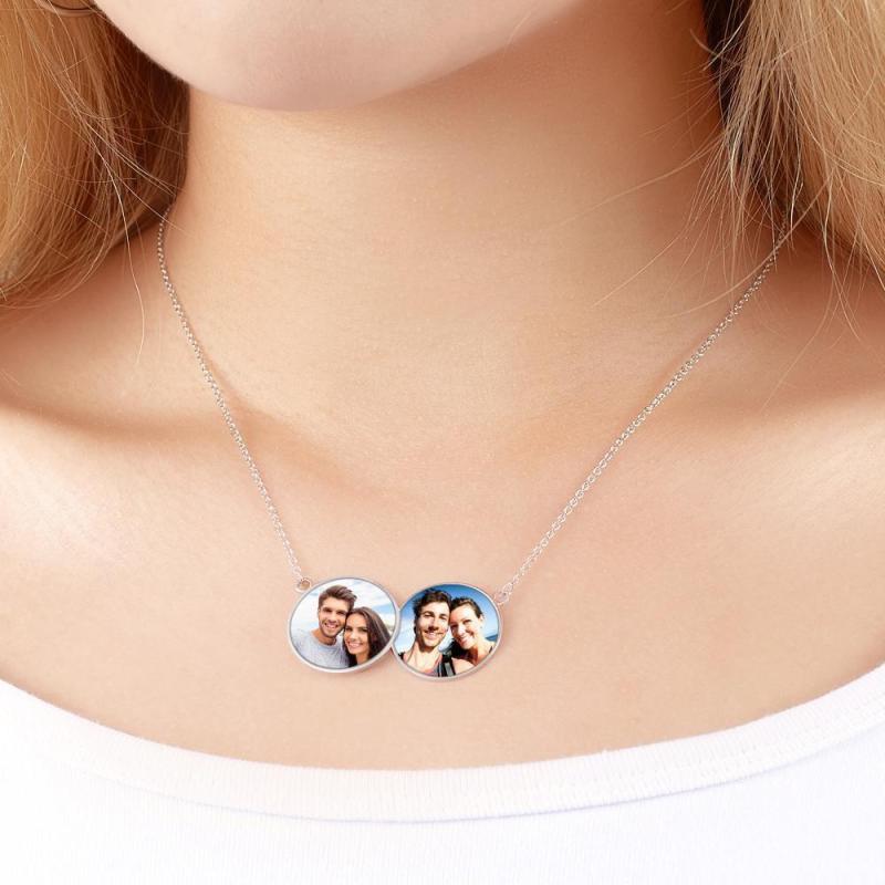 Personalisierte Fotoketten Horizontaler Doppelrunder Fotoanhänger
