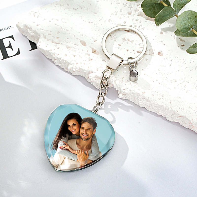 Benutzerdefinierter Fotoprojektions-schlüsselanhänger, Kristall-schlüsselanhänger, Herzförmig Für Paare