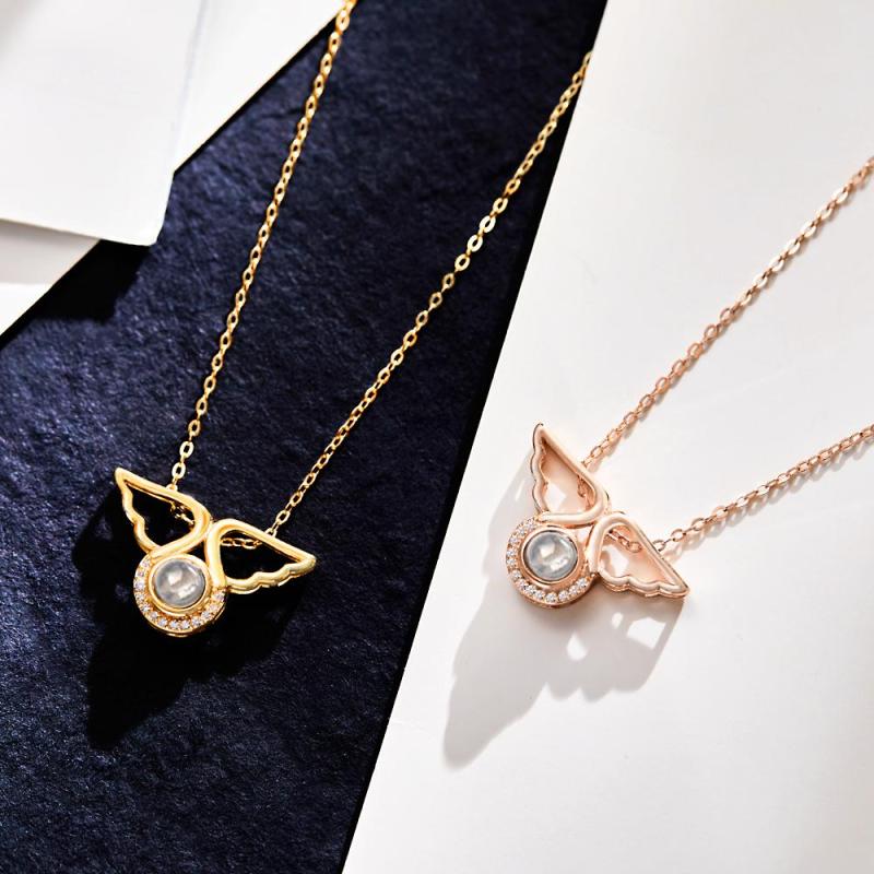 Individuelle Fotoprojektionskette mit Engelsflügel-Anhänger, kreatives Geschenk