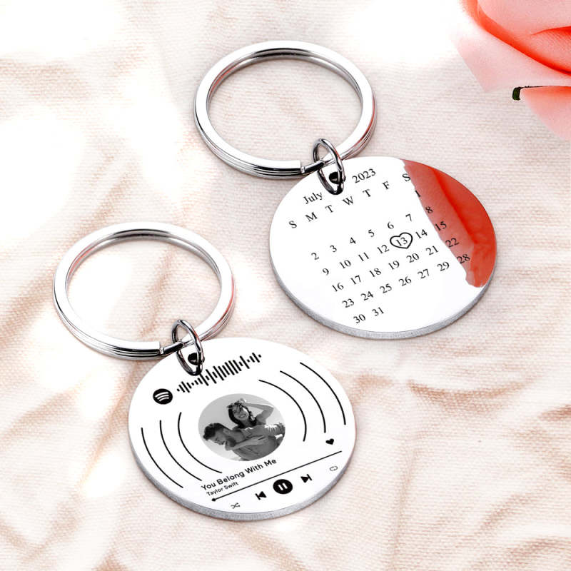 Benutzerdefinierter Foto-spotify-kalender-schlüsselanhänger, Personalisierter Musik-song-schlüsselanhänger Aus Edelstahl, Geschenk Für Liebhaber