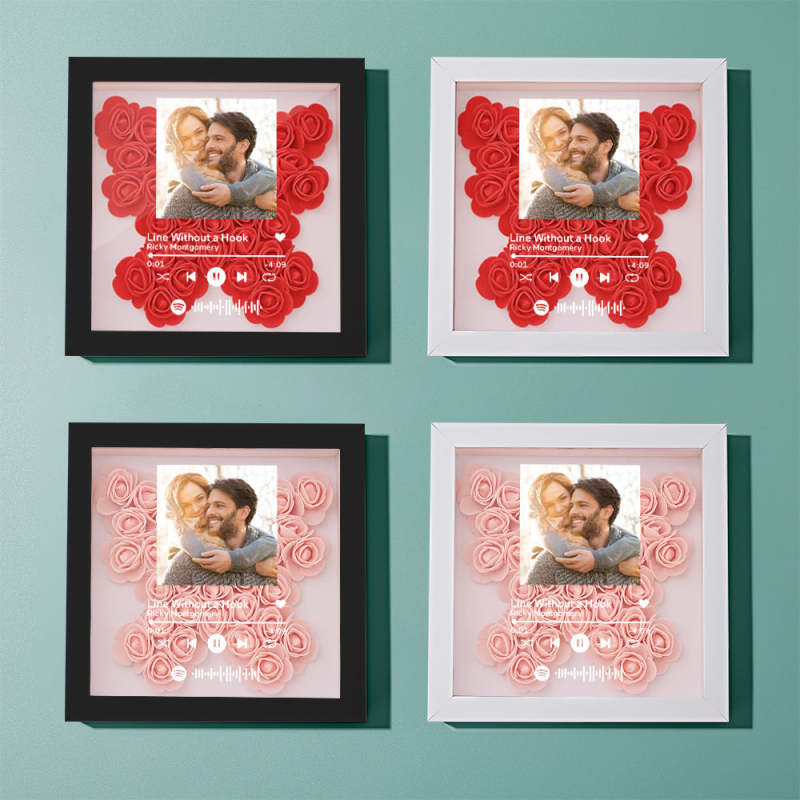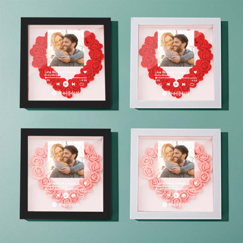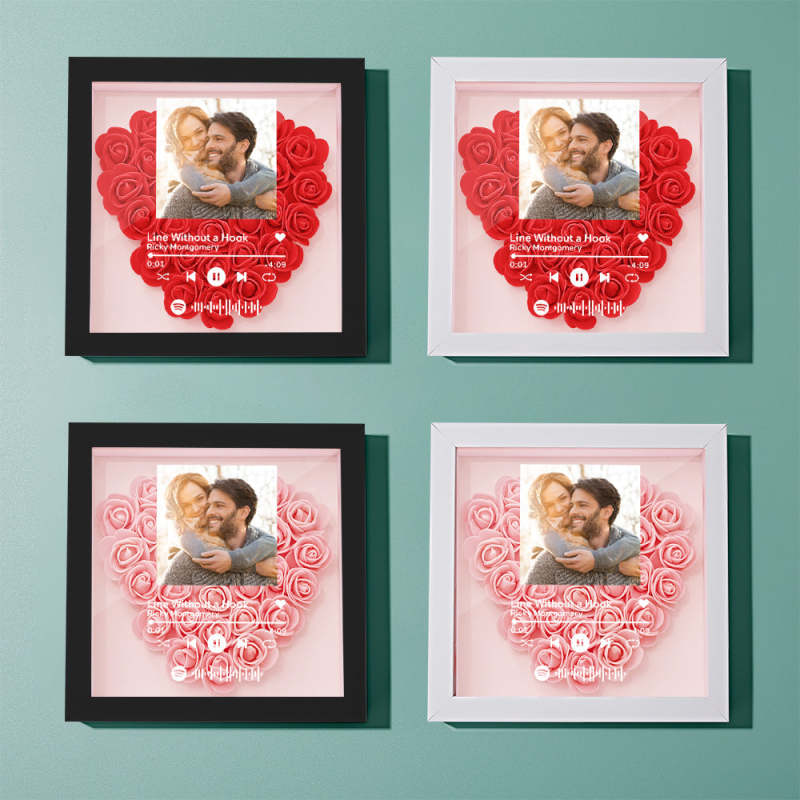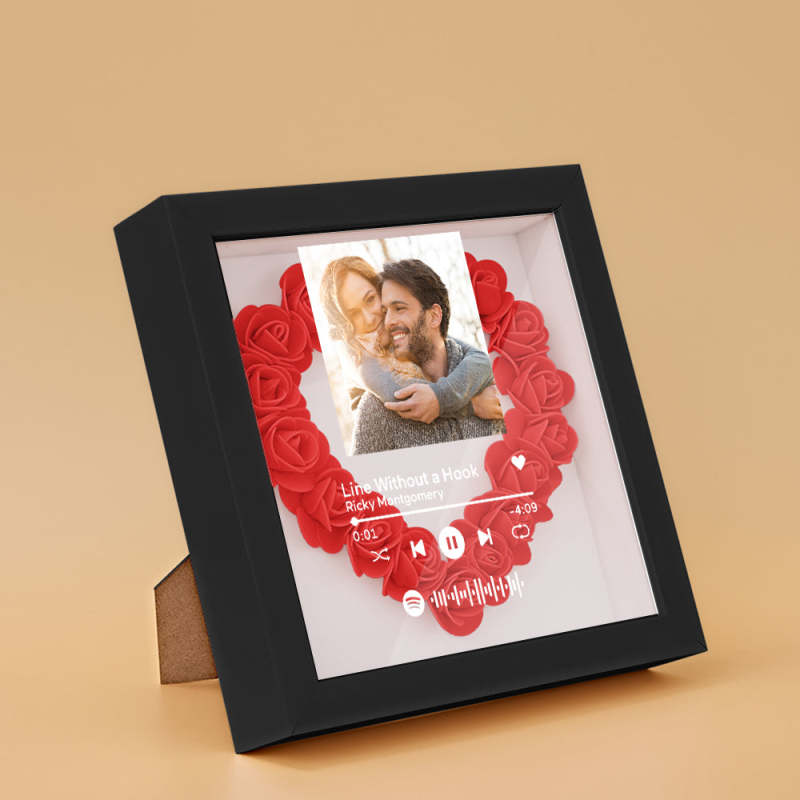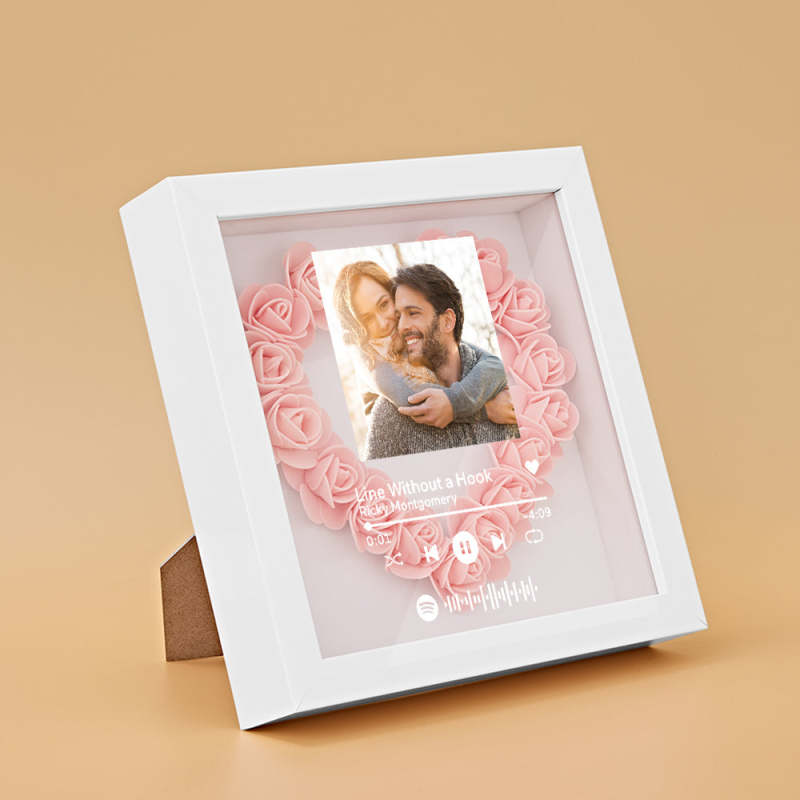 Benutzerdefinierter Scannbarer Spotify-code Foto-musik-blumen-schattenbox Personalisiertes Blumen-schattenbox-rahmen-geschenk