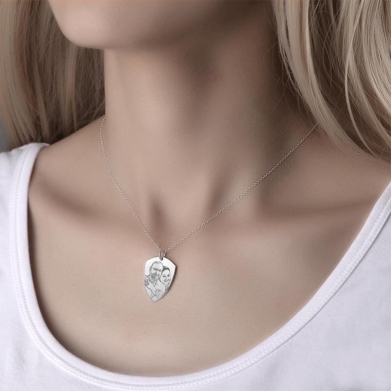 Schild Foto Gravierte Anhänger Halskette mit Gravur Silber
