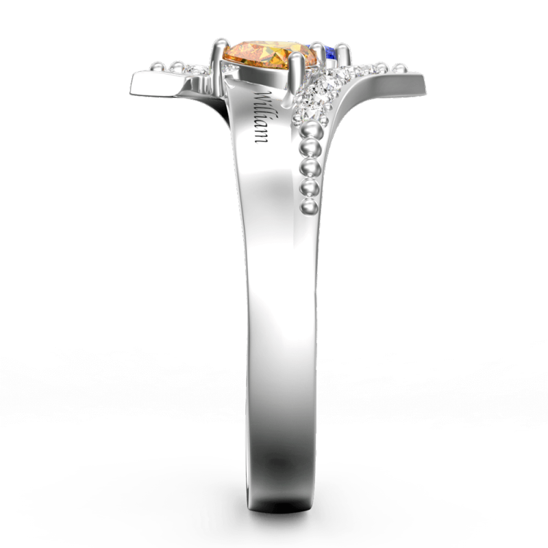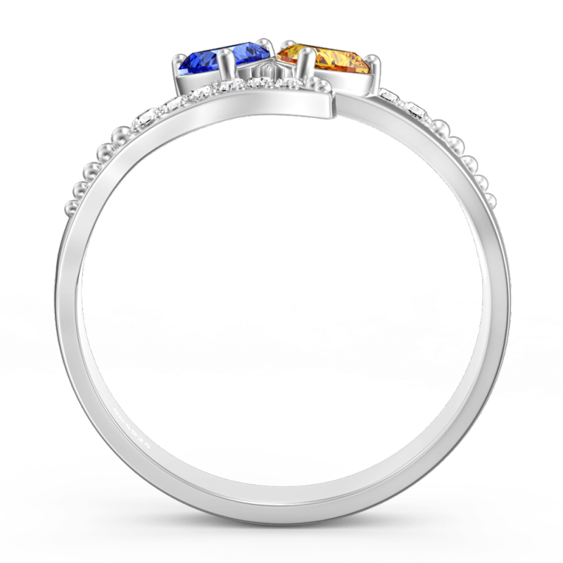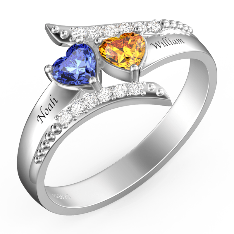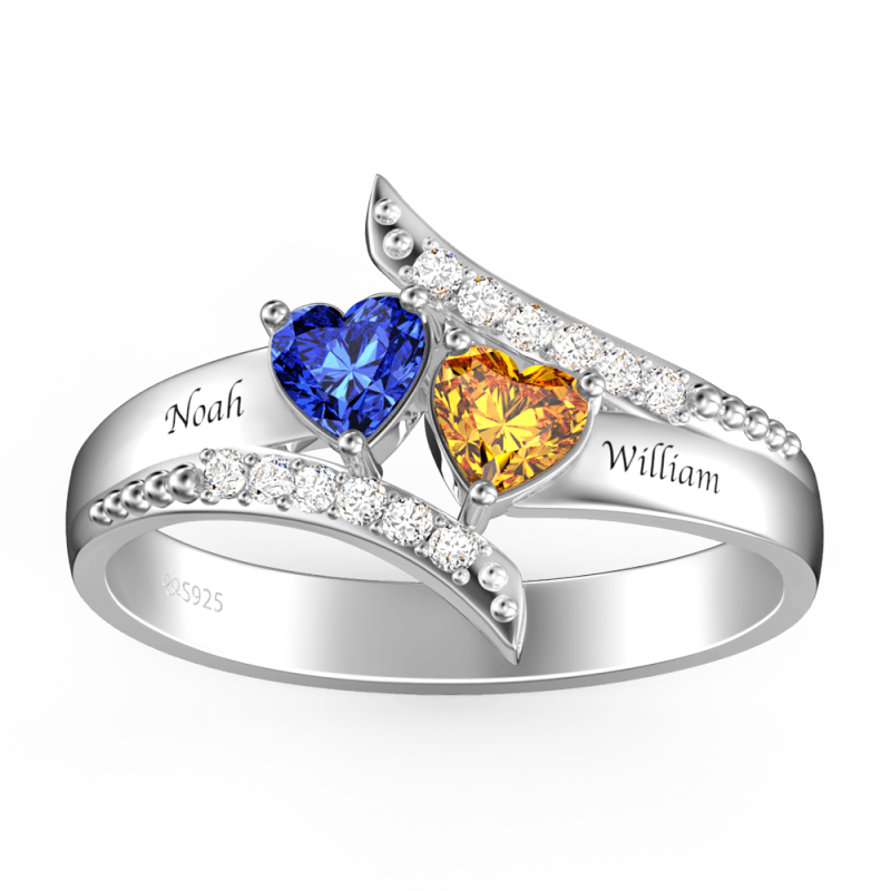 Doppelreihe Diamanten Herz Geburtsstein Versprechen Ring Gravierter Name Silber Für Sie