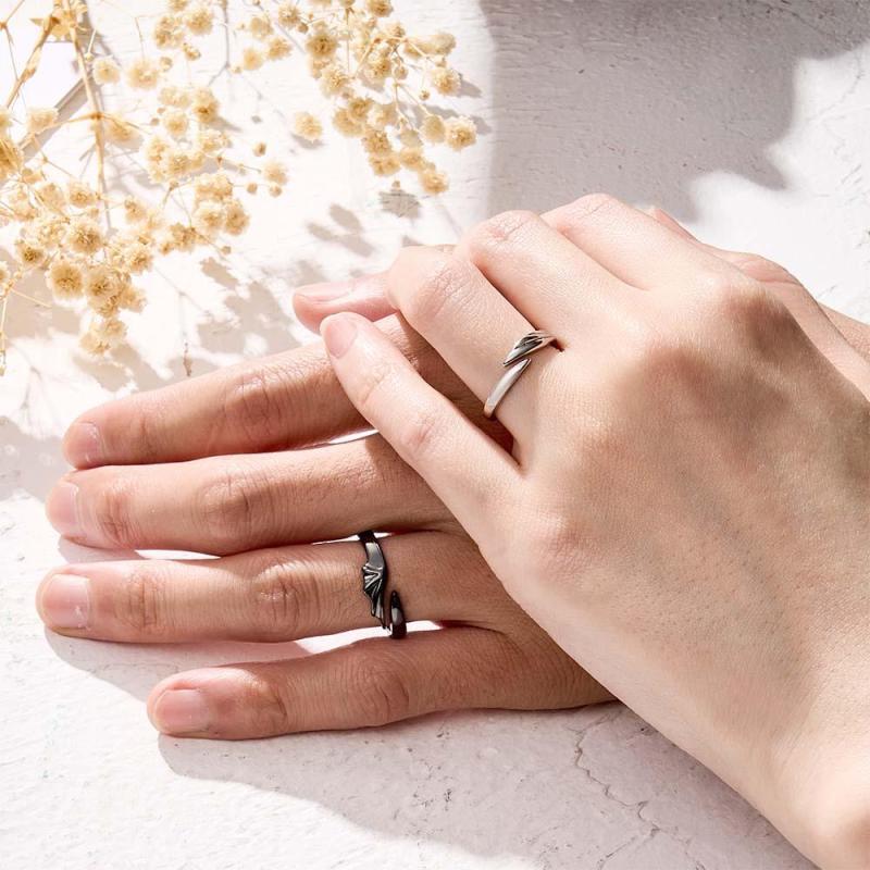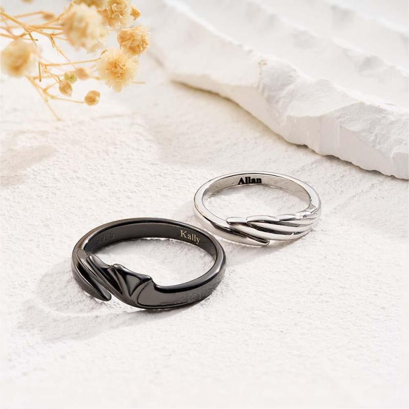 Gravierbarer Flügel-teufel- Und Engel-ring, Einfache, Trendige Offene Ringe Für Paare