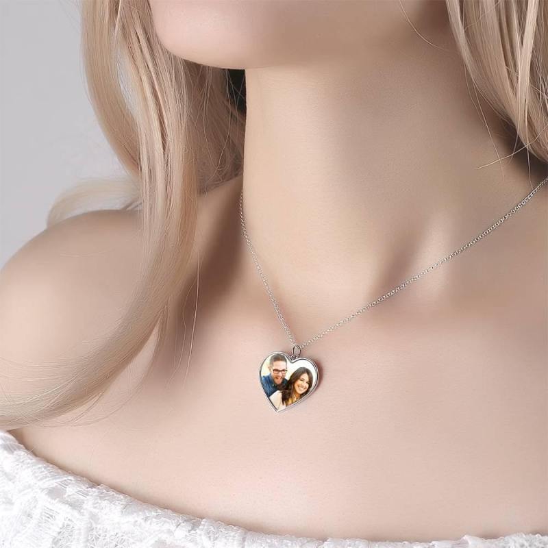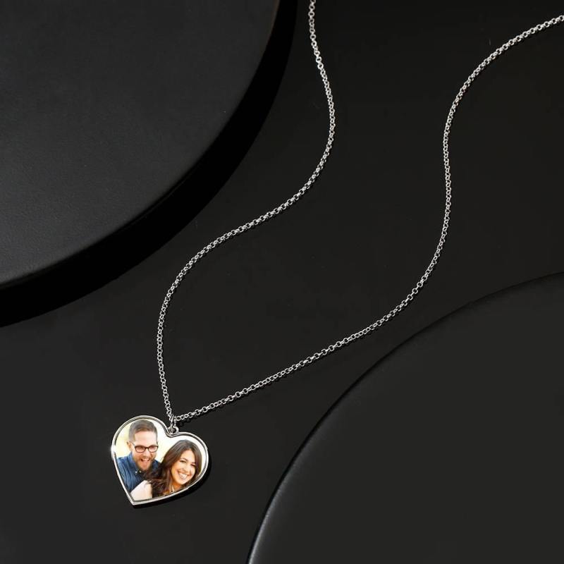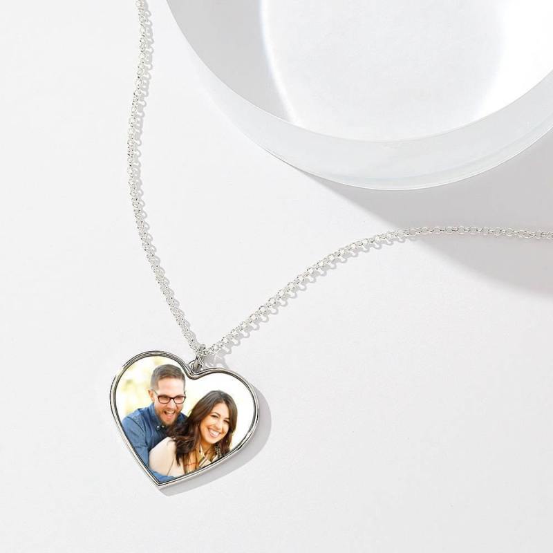 Graviertes Herz Tag Foto Halskette Silber