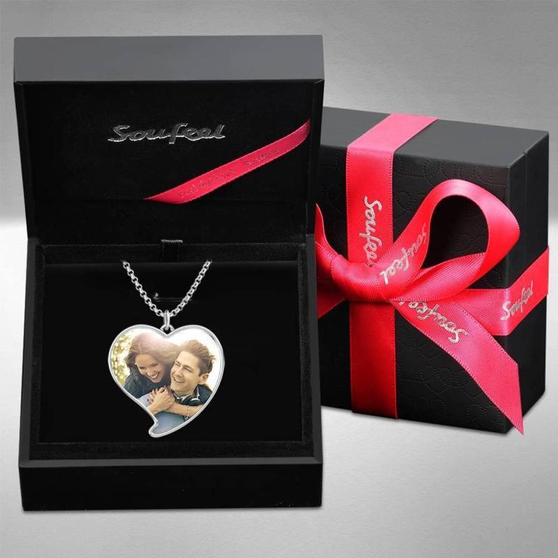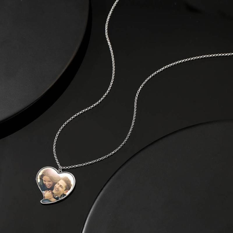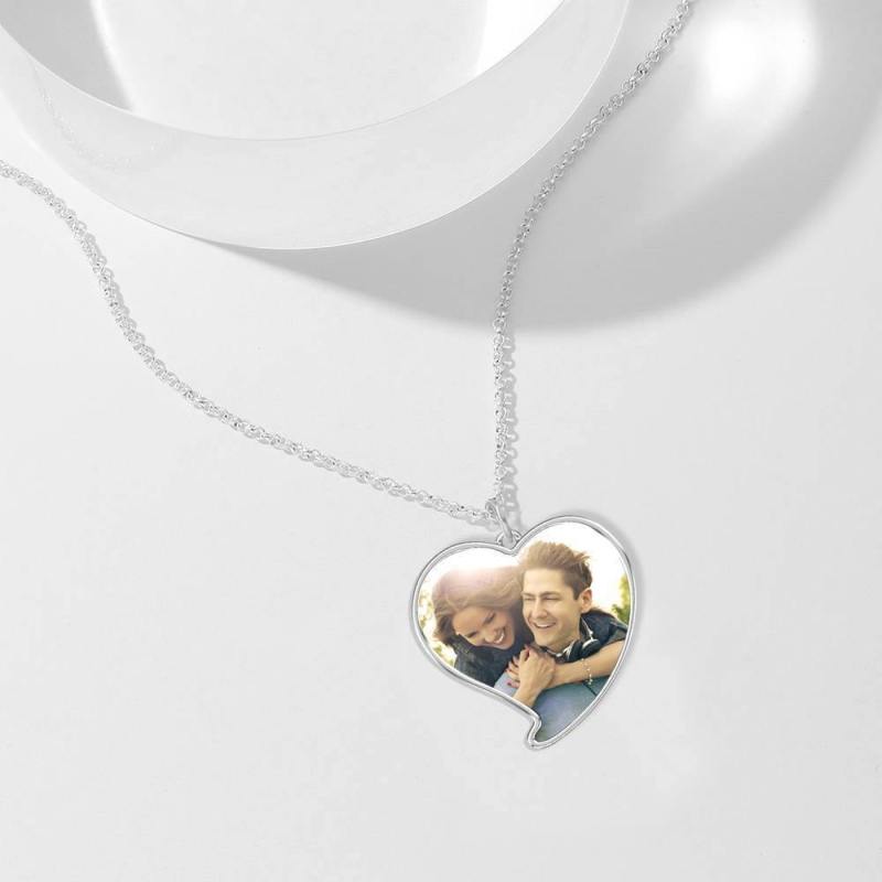 Graviertes Herz Tag Foto Halskette Silber
