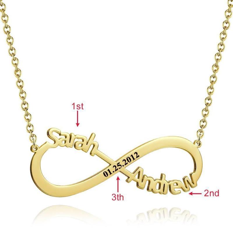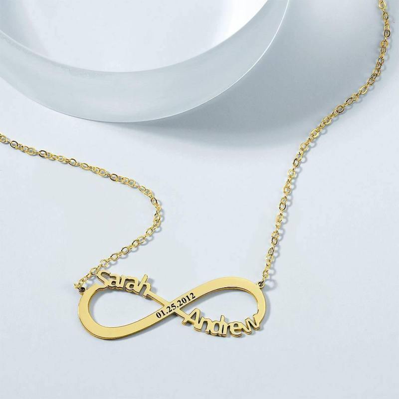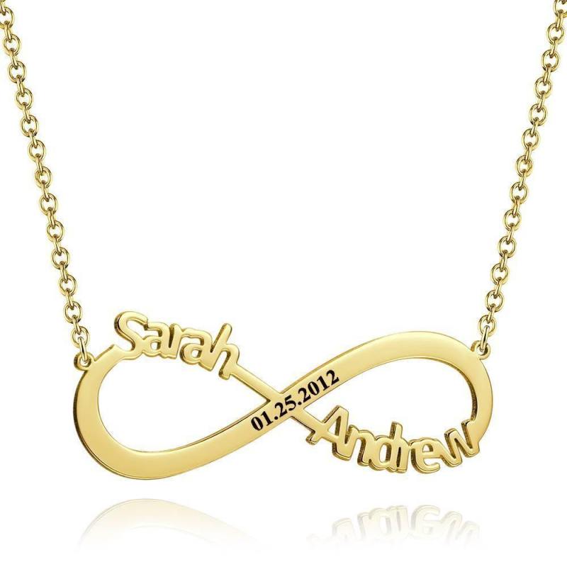 Gravierte Unendlichkeit Name Halskette, Personalisierte Unendlichkeit Zwei Namen Halskette 14K Vergoldet - Golden