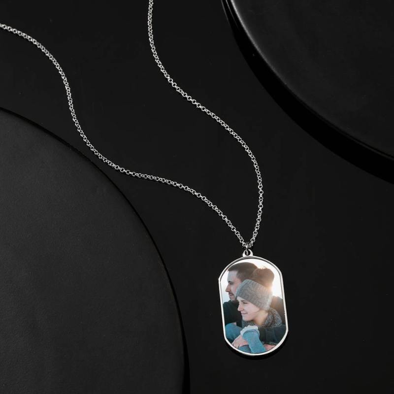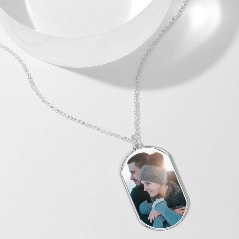 Gravierte Fotoanhänger Halskette Silber