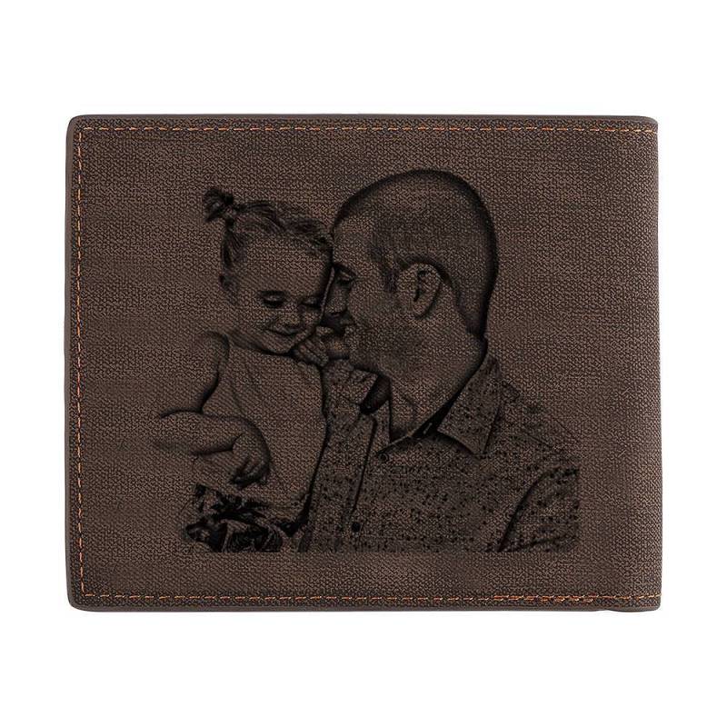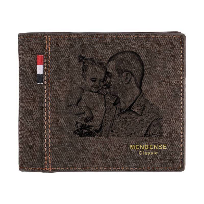 Kundenspezifisches Foto Gravierte Geldbörse Kurz Stil Bifold - Kaffee Leder