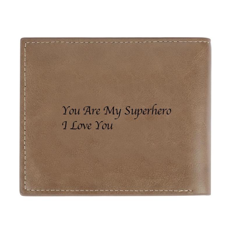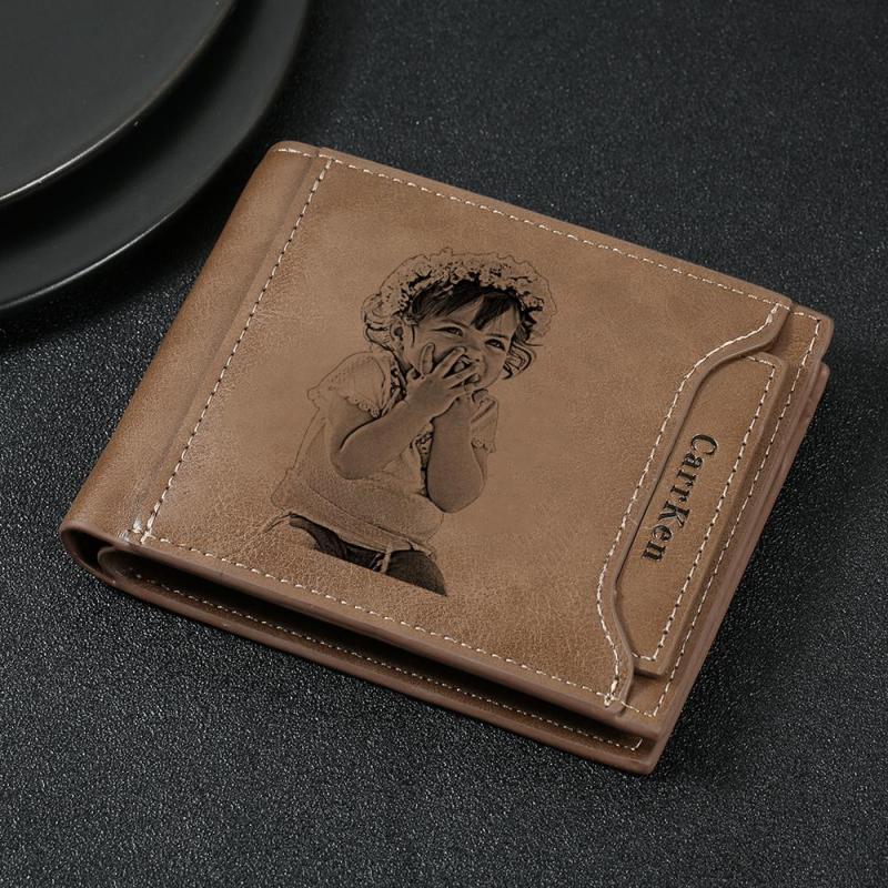 Kundenspezifisches Foto Gravierte Geldbörse Kurz Stil Bifold - Braunes Leder