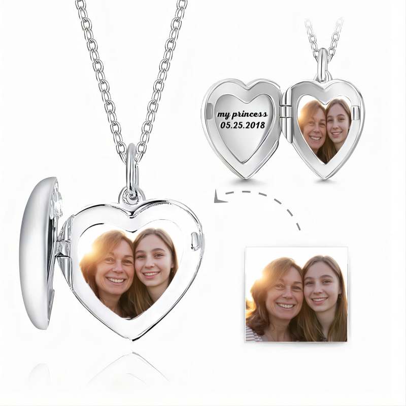 Gravierte Herz-foto-medaillon-halskette Aus Silber Halloween-Geschenke
