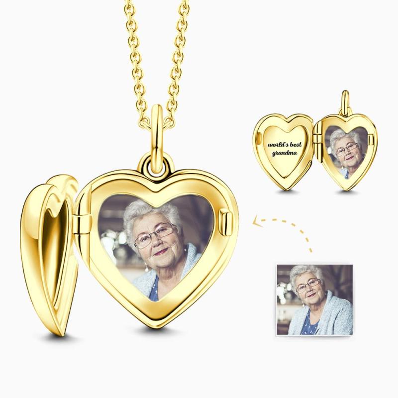 Herz gravierbares Foto Locket mit kette 14k VerGoldet Silber