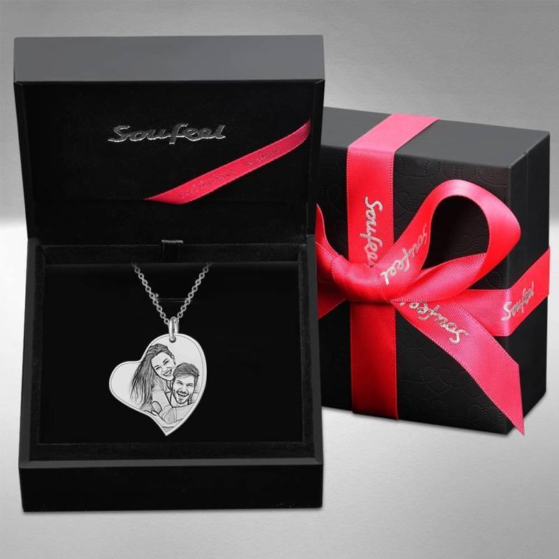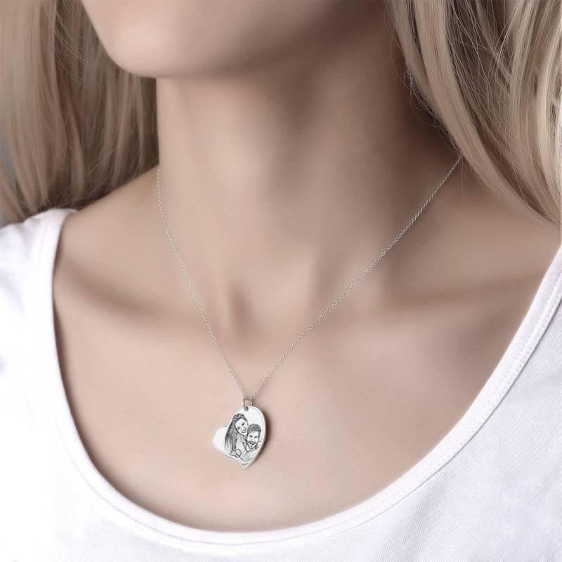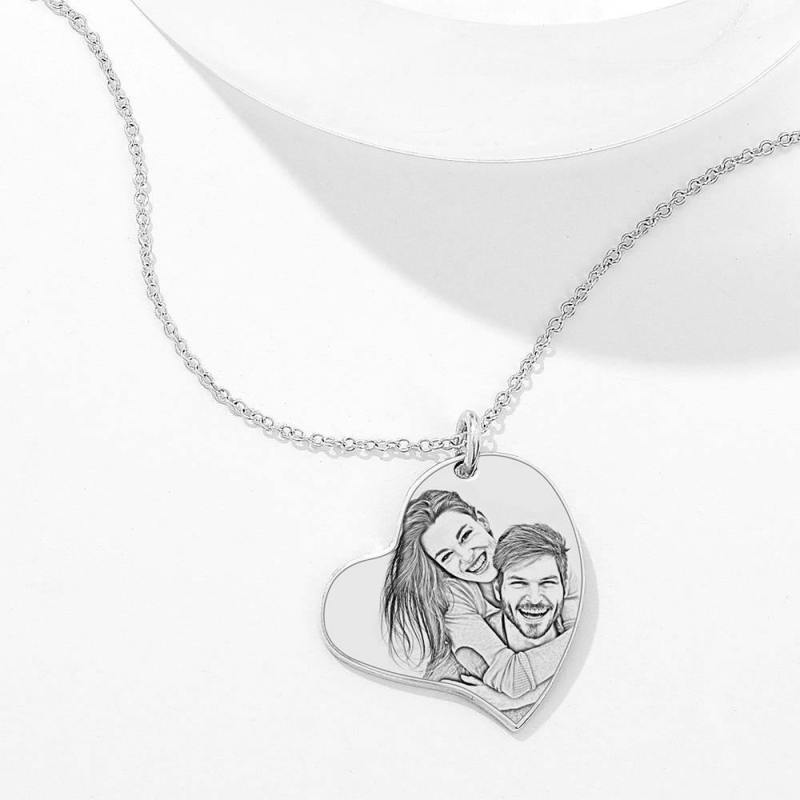 Herz Foto Graviert Tag Halskette Mit Gravur Silber