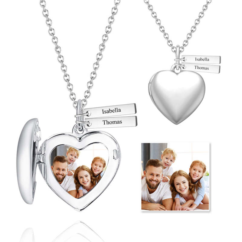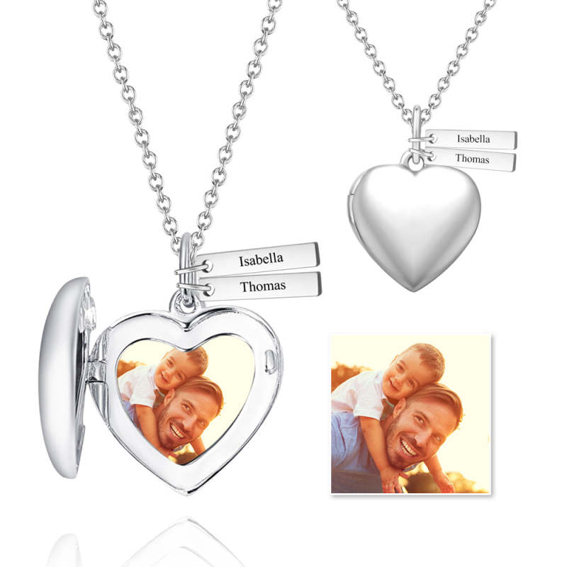 Heart Printing Photo Locket Necklace With Engraving Platinum Plated