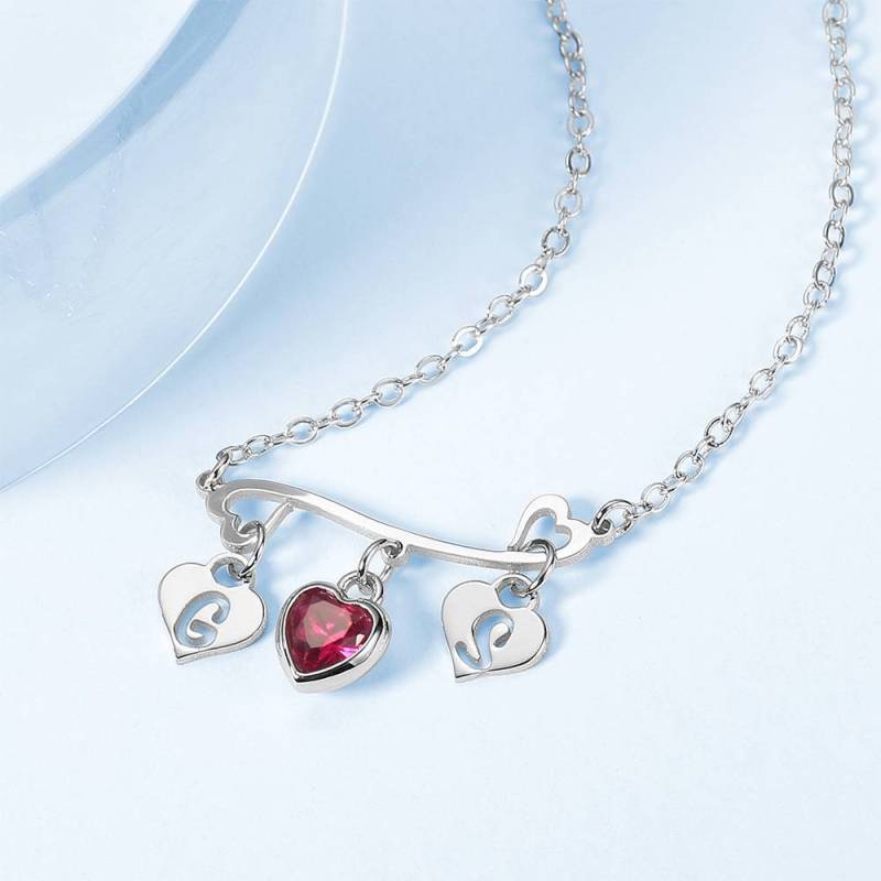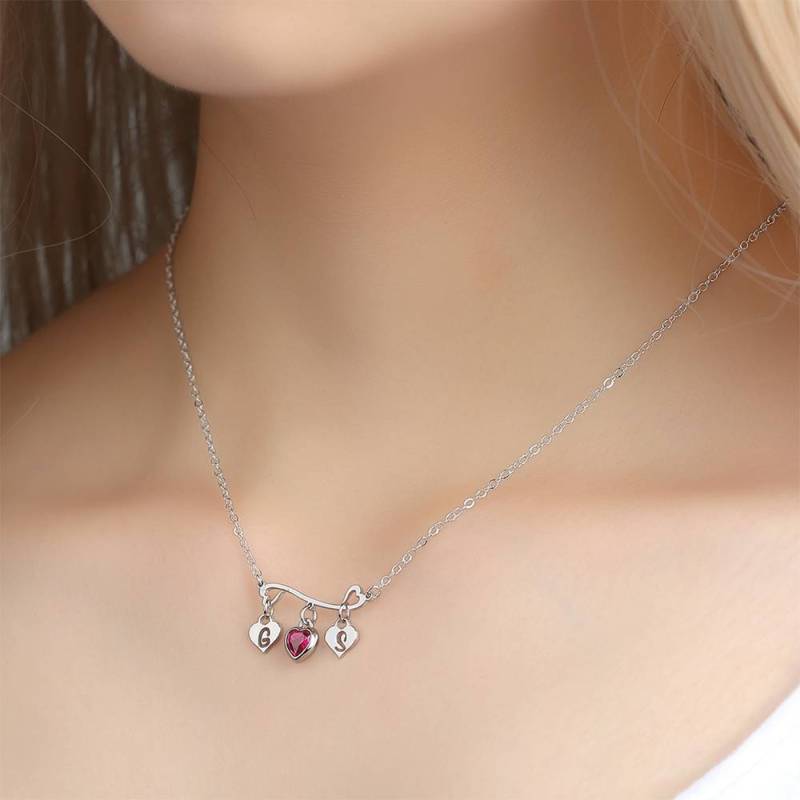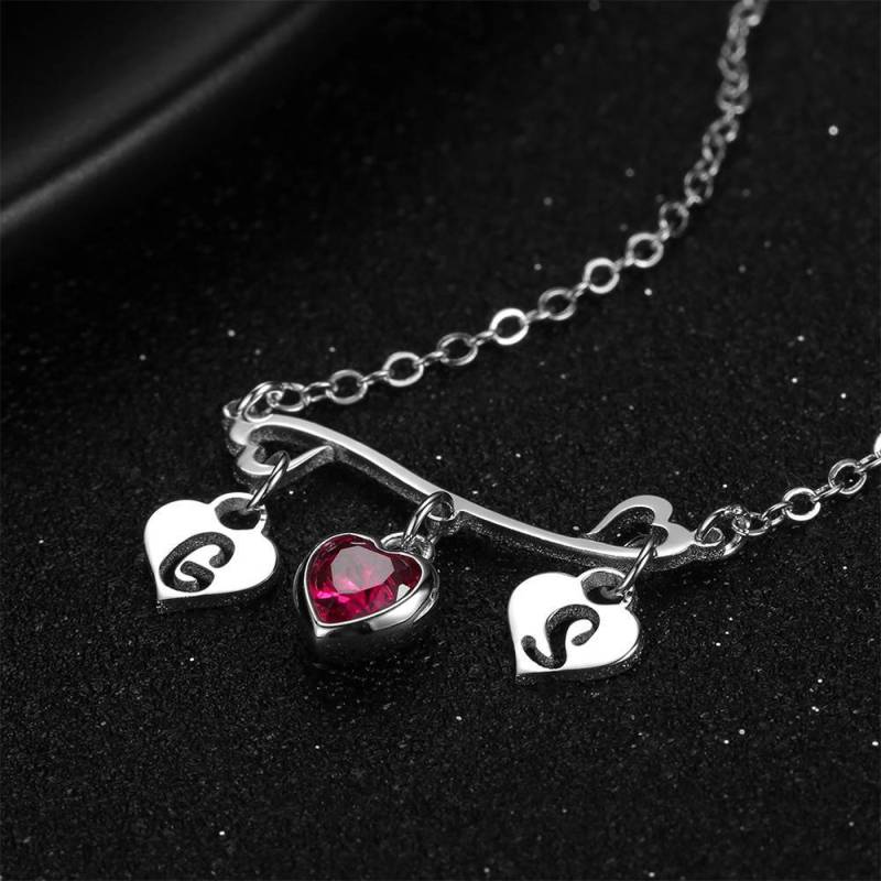 Anfängliche Geburtsstein Halskette, Liebespaar Halskette Herzförmig Platiniert - Silber