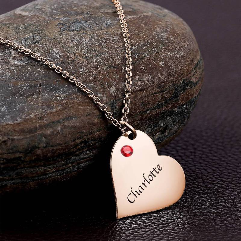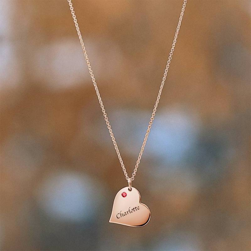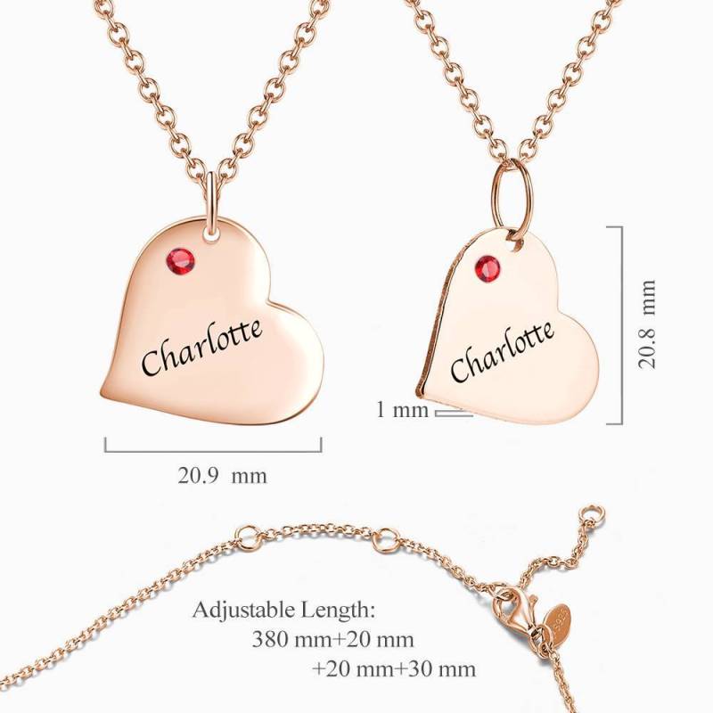 Herz-Tag personalisierte Geburtsstein-Halskette mit graviertem roségoldbeschichtetem Silber