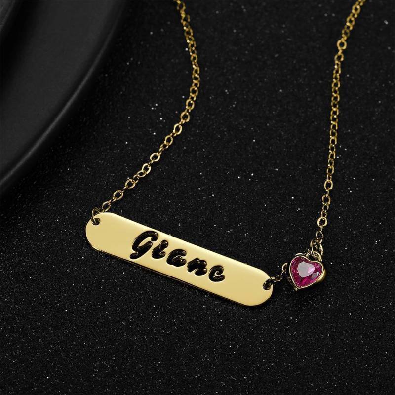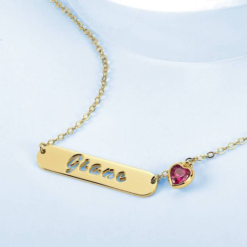 Hohl Geschnitzte Bar Namenskette mit Kundenspezifischem Geburtsstein, Einzigartiges Geschenk 14k Vergoldet - Golden