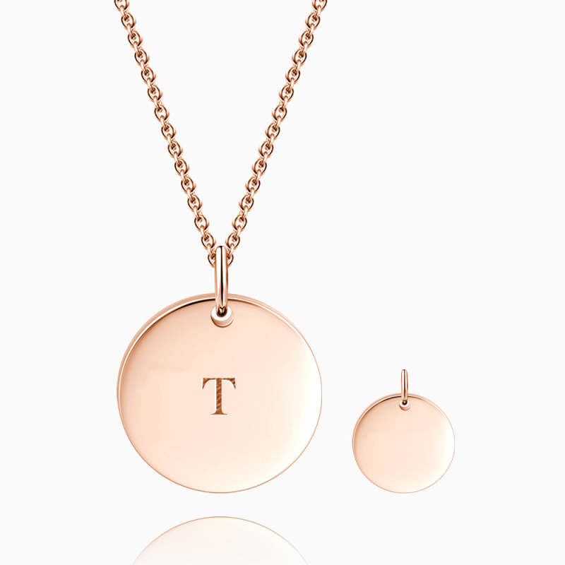 Initial Coin Necklace With Engraving Rose Gold Plated