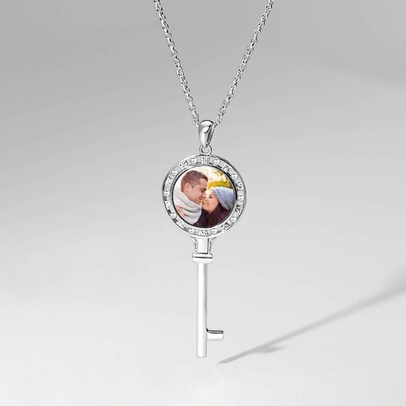 Schlüssel Foto Halskette mit CZ Platin überzogenen Silber