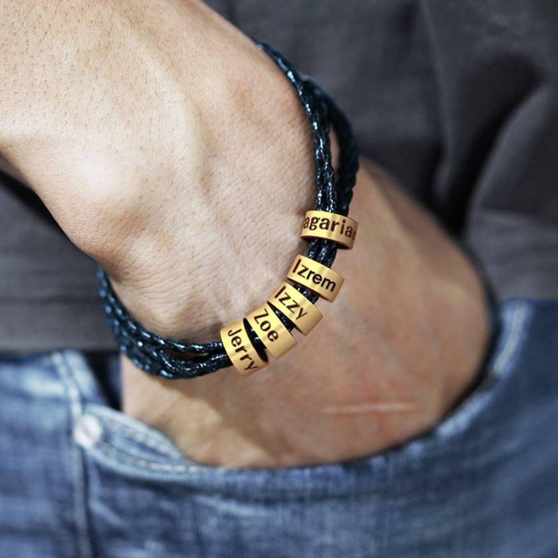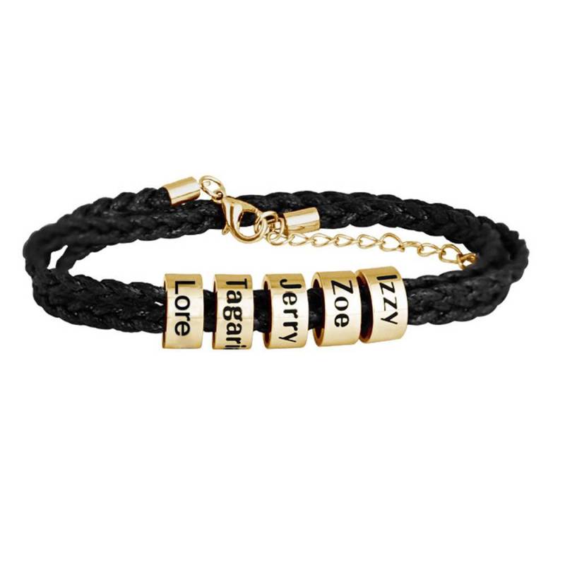 Kundenspezifisches Graviertes Armband mit Fünf Perlen Geflecht Golden - Herren