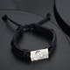 Men's Rectangle Photo Engraved Tag Bracelet Black Leather Strap Gift For Dad