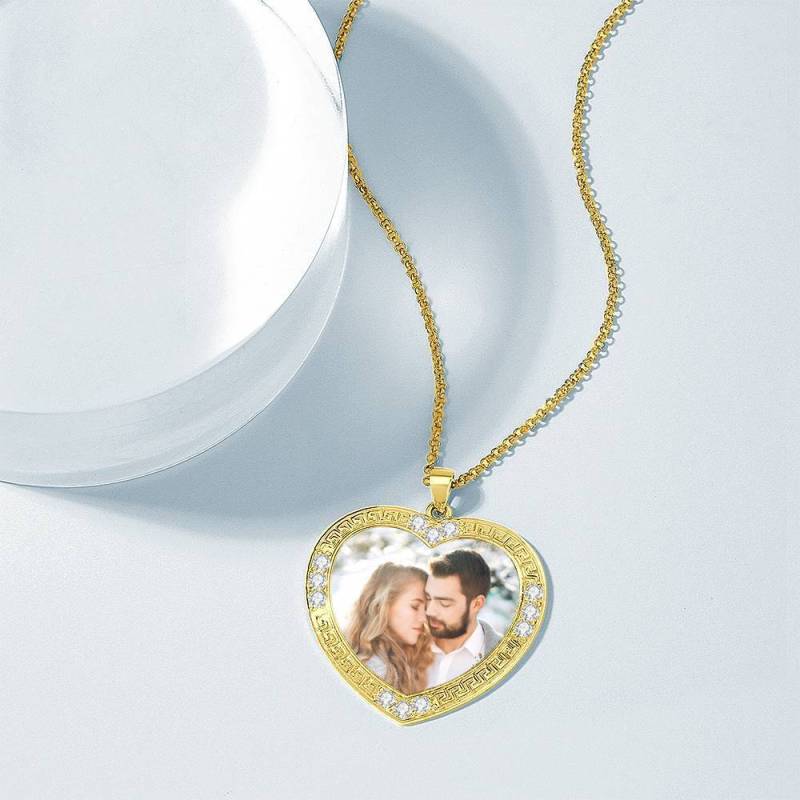 Herren Personalisierte Foto Gravierte Halskette, Strass Kristall Herzform Foto Halskette 14 Gold Vergoldet - Bunt
