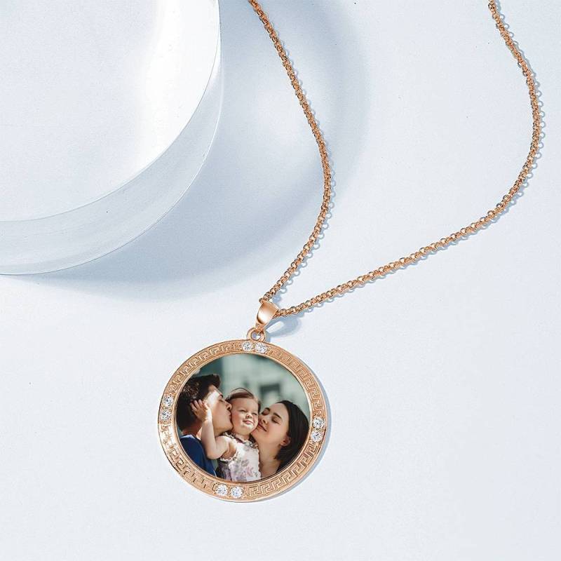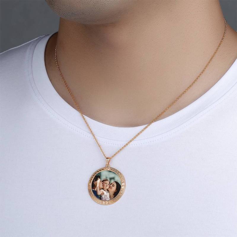 Herren Personalisierte Foto Gravierte Halskette, Strass Kristall Runde Form Foto Halskette Rose Vergoldet - Bunt
