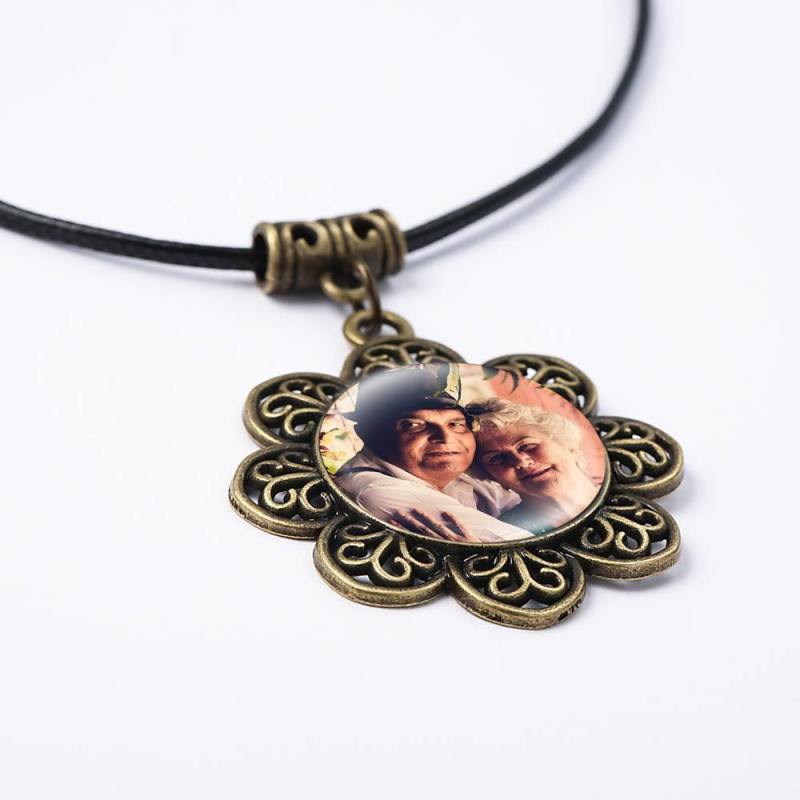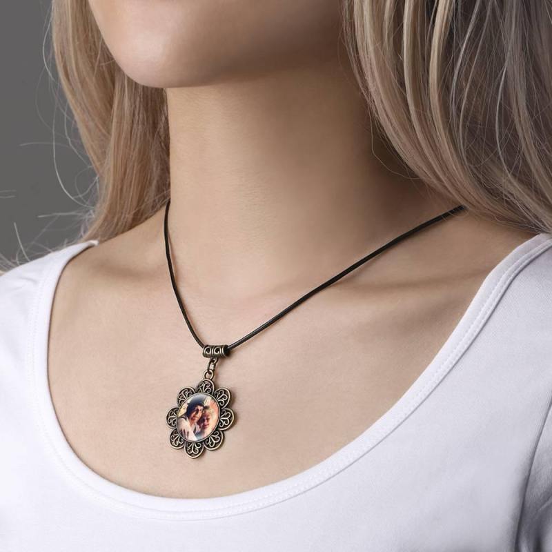 Runde Foto-Halskette Mit Blumenbordüre