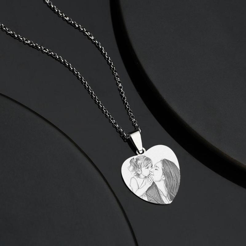 Mutter S Tag Geschenke Frauen S Herz Foto Graviert Halskette Edelstahl Schwarz Und Weiß