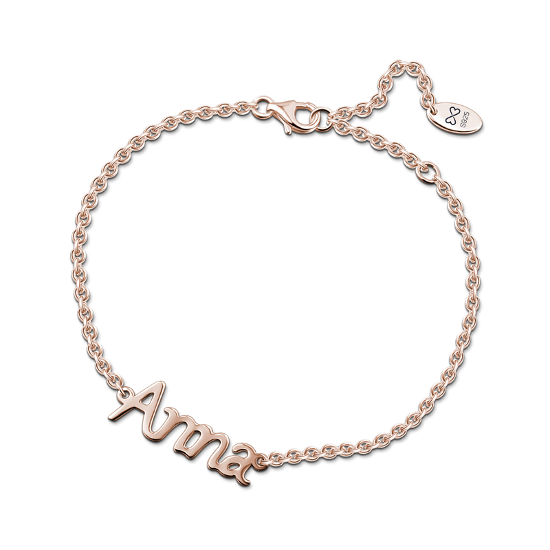 Personalisierte Namen Armband Rose Gold überzogen Silber - Länge Verstellbar