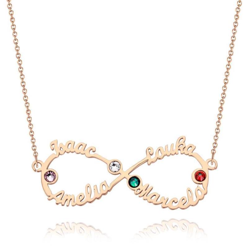 Namenshalskette Mit Geburtsstein Infinity Halskette Vier Namen Vier Geburtssteine Rose Vergoldet - Silber