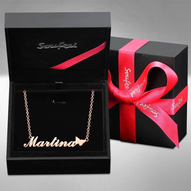 Personalisierte Schmetterling Name Halskette, Perfektes Geschenk Für Freundin Rose Gold Plattiert - Silber
