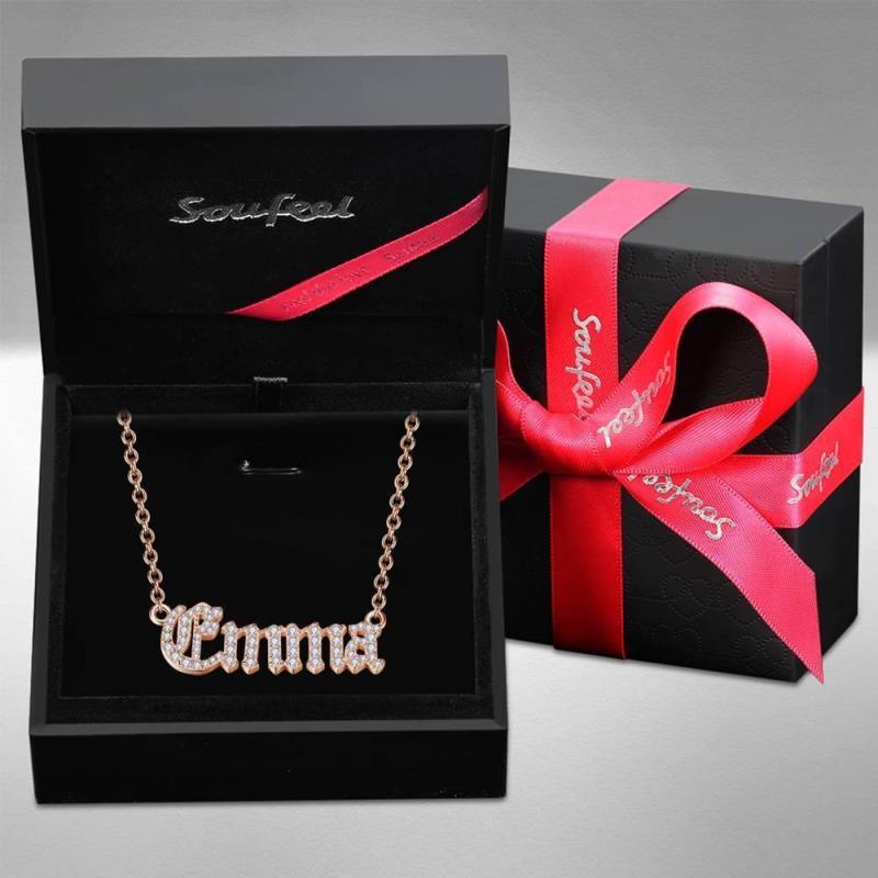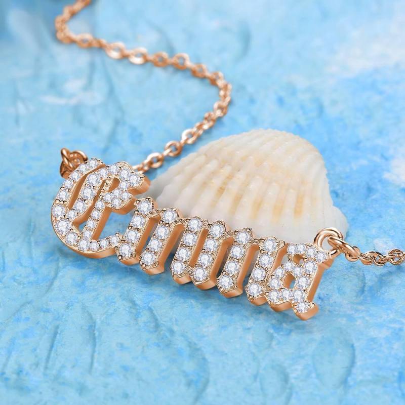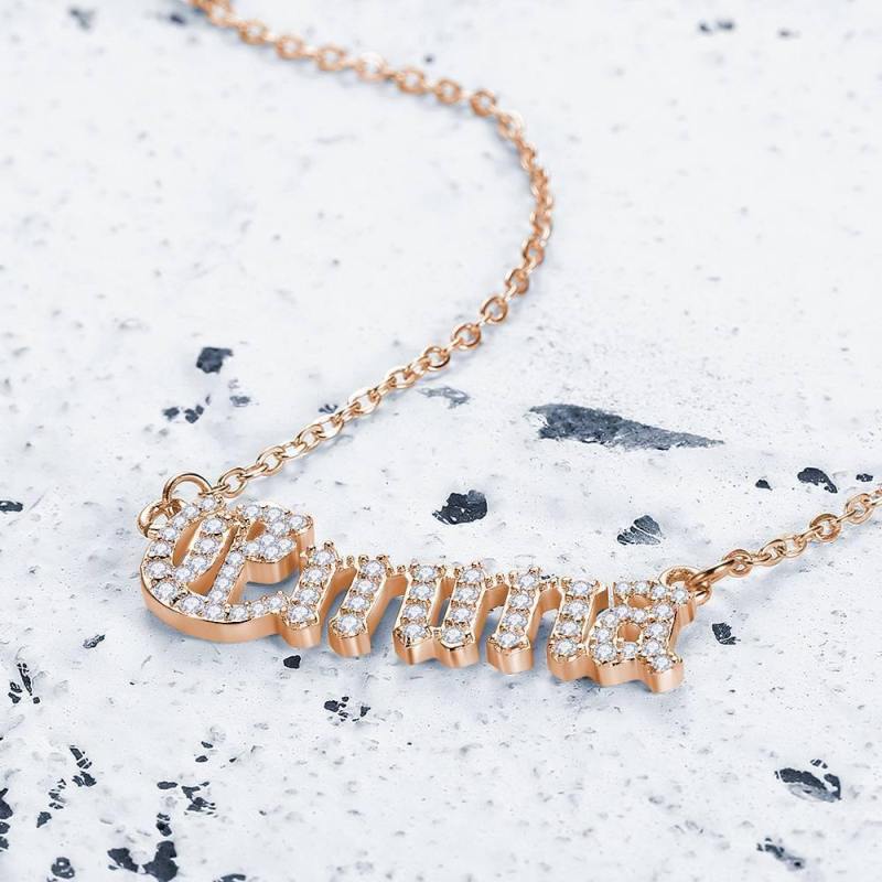 Old English Crystal Name Necklace, Silber Rose Gold Plated - Rose Gold