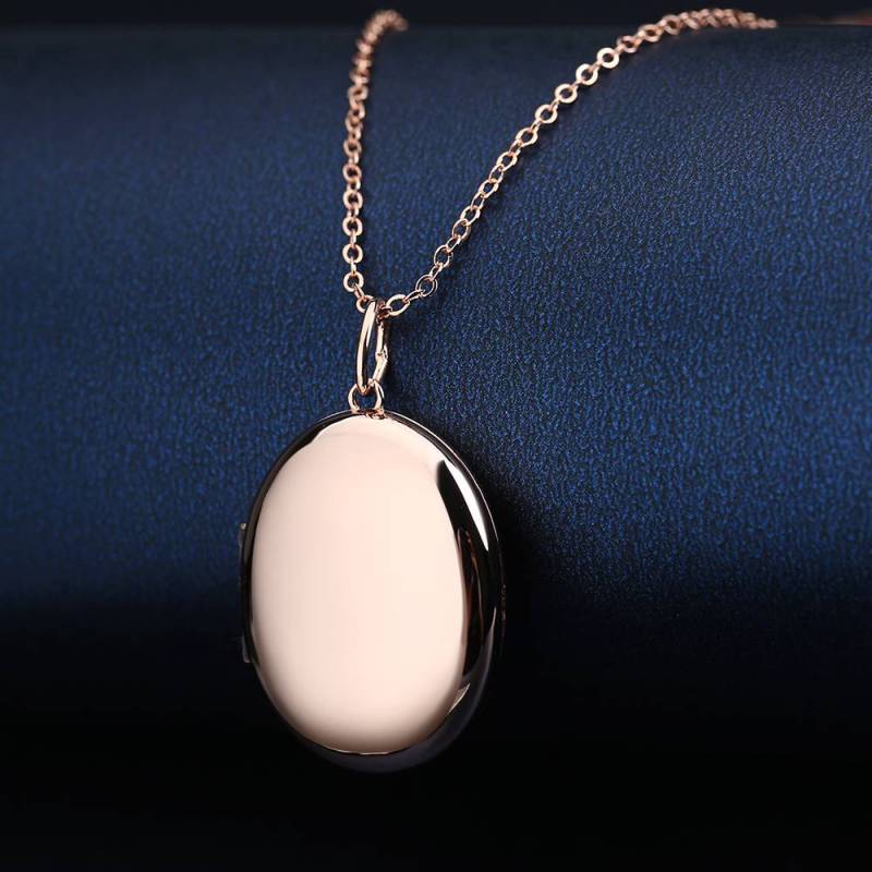 Oval Photo Locket Necklace With Engraving Rose Gold Plated