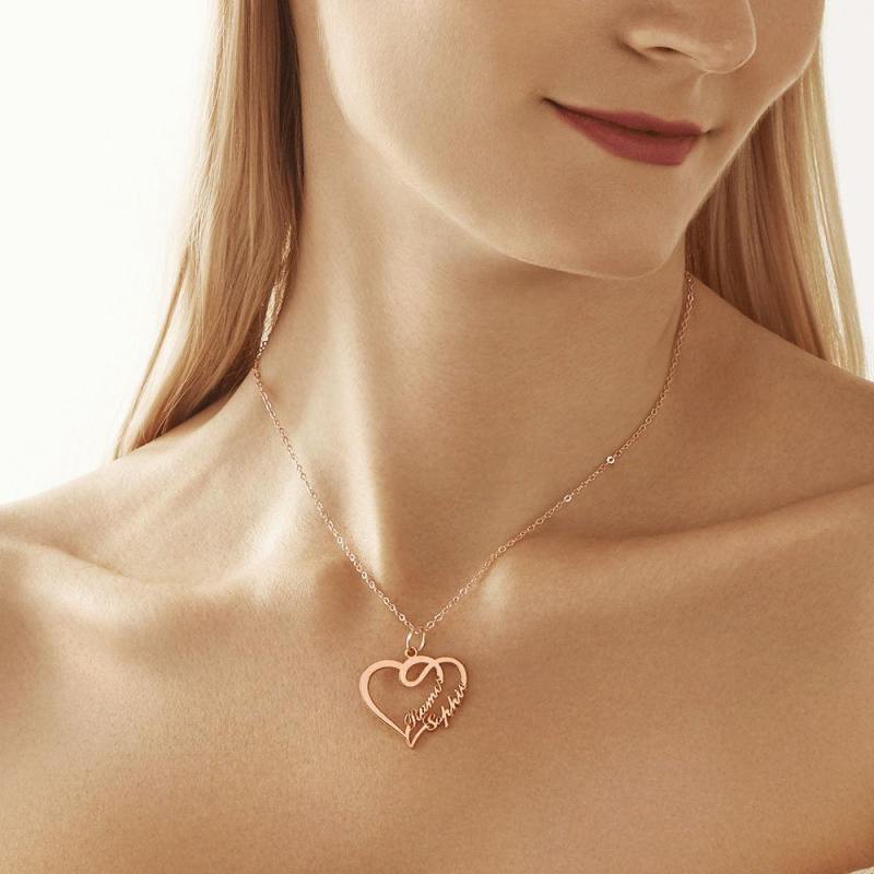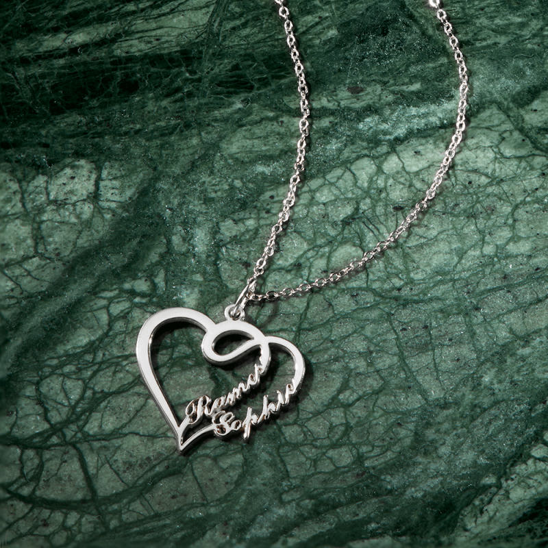 Überlappendes Herz Mit Zwei Namen Halskette Silber