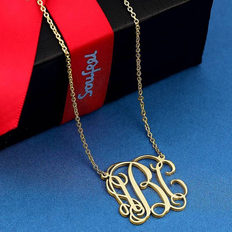 Große Monogramm-Halskette 14K Gold Plattiert Silber