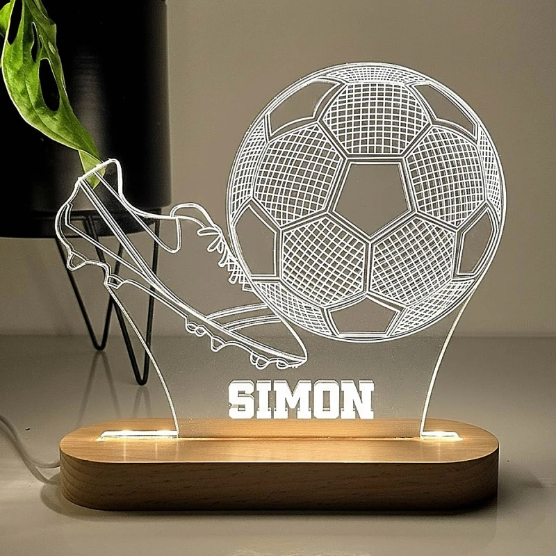 Personalisierte 3d-fußball-nachtlampe Mit Individuellem Namen, Led-fußballlampe Für Kinder