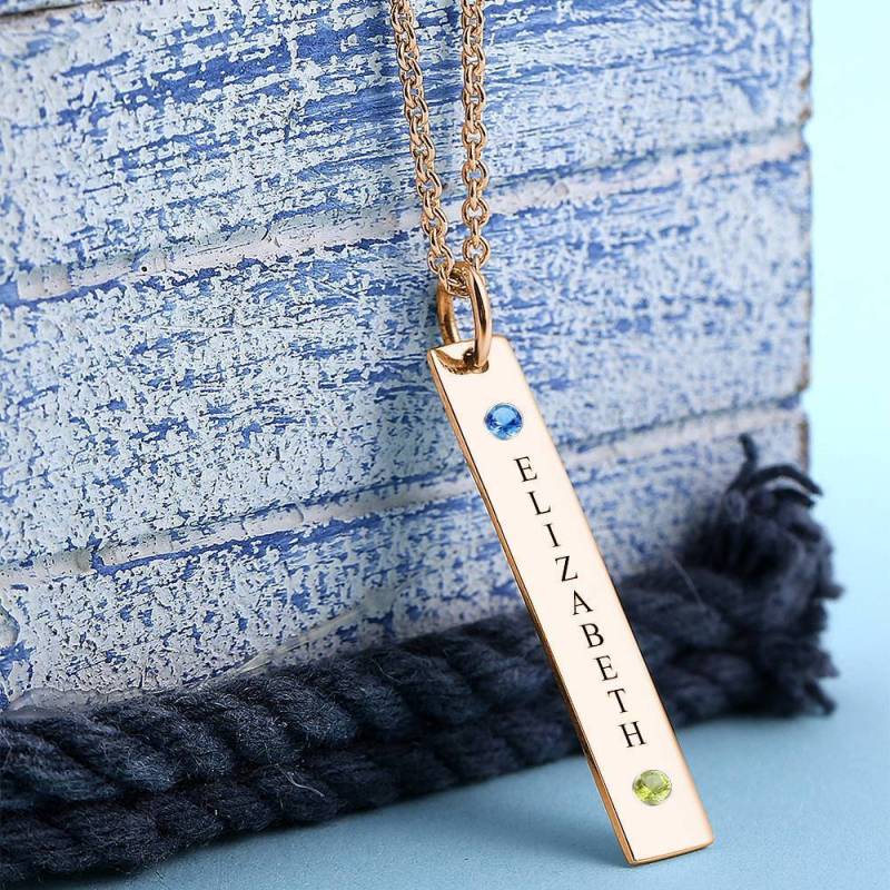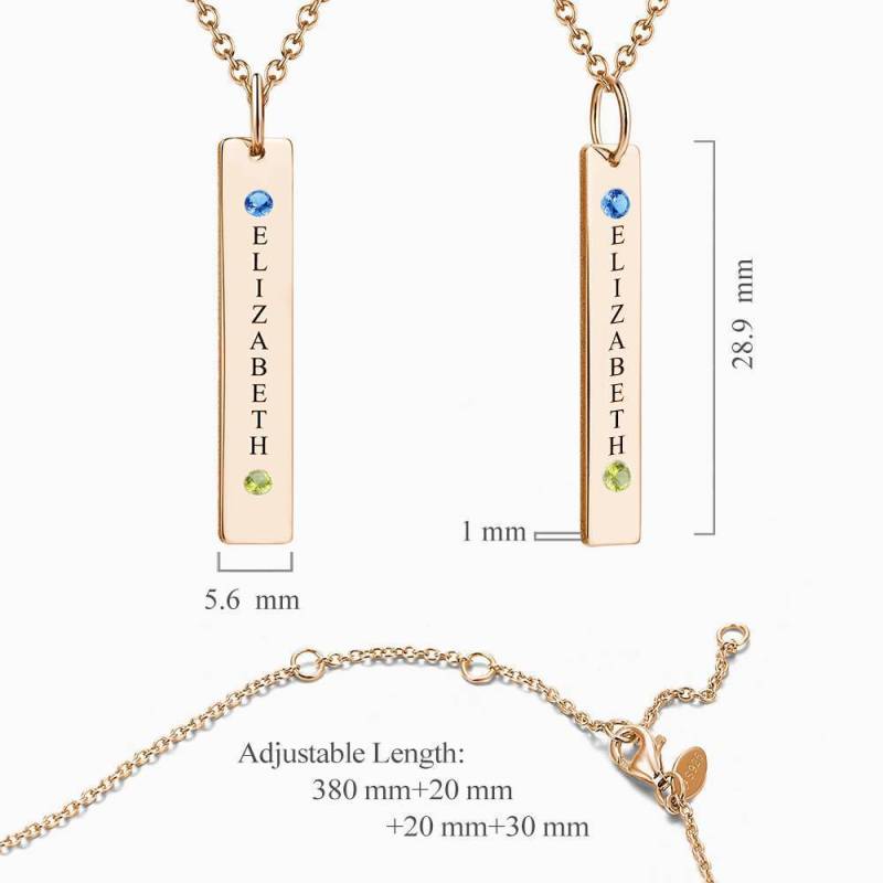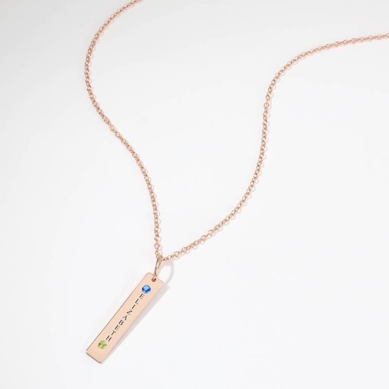 Personalisierte Geburtsstein Vertikal Anhänger Halskette mit Gravur Rosa Gold überzogen Silber