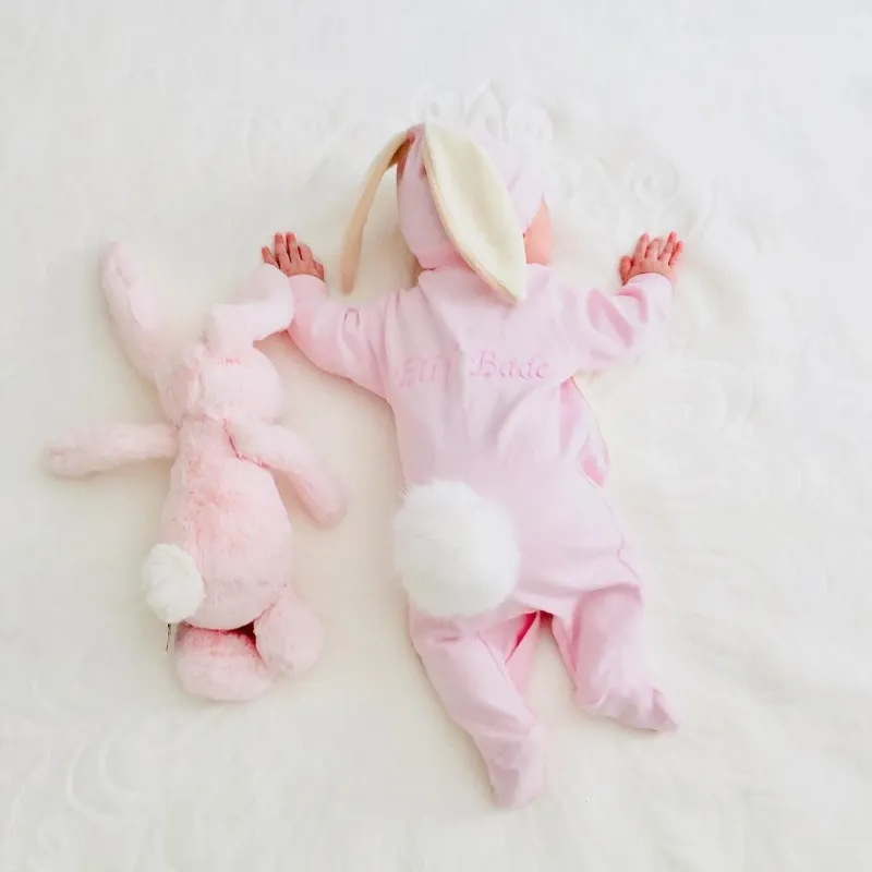 Personalisiertes Hasen-outfit Für Baby, Individueller Name, Baby-häschen-strampler, Personalisiertes Handbesticktes Oster-outfit, Baby-geschenk