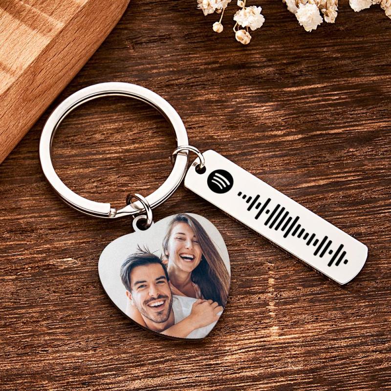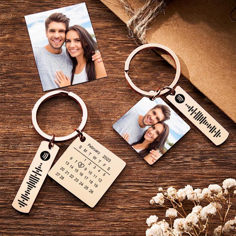 Personalisierter Kalender-schlüsselanhänger, Besonderer Tag, Bedeutendes Foto, Herz, Quadratische Form, Musikcode, Metall-schlüsselanhänger, Jahrestagsgeschenk