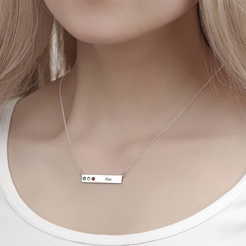 Benutzerdefinierte Geburtsstein Halskette mit Gravur, Anhänger Halskette Einfachen Stil mit Platin überzogen