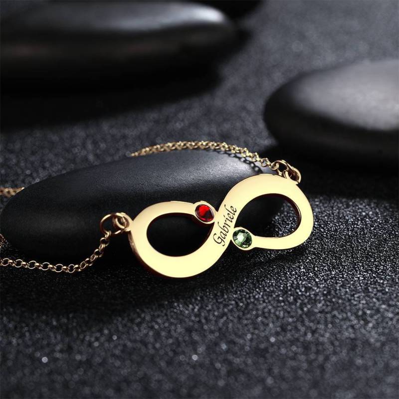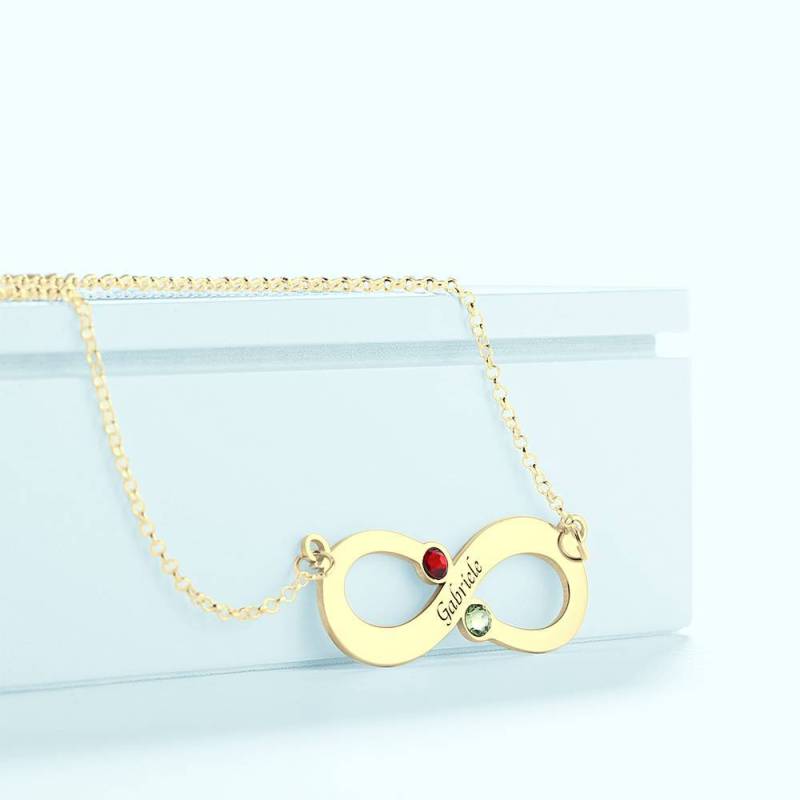 Benutzerdefinierte Gravierte Halskette, Geburtsstein Unendlichkeit Halskette14K vergoldet