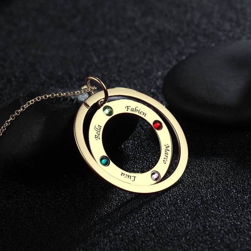 Personalisierte Geburtsstein Halskette mit Gravur in runder Formular 14K vergoldet