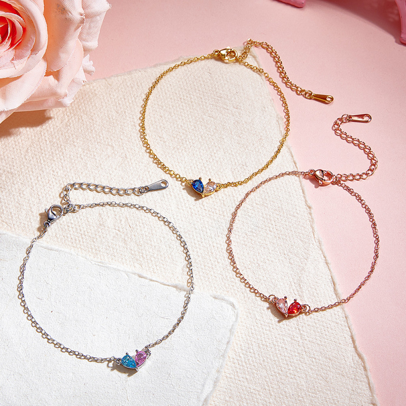Personalisiertes Geburtsstein-herzarmband Für Paare, Individuelles Armband Mit Zwei Geburtssteinen Für Paare, Verstellbares Partnerarmband
