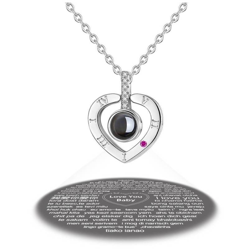 Ich liebe dich Halskette in 100 Sprachen Projektion Gravierte Halskette Herzförmig Silber
